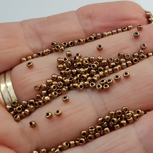 TOHO 11/0 Round Seed Beads – PermaFinish Galvanized Medal Bronze (PF594) | Beading Supply