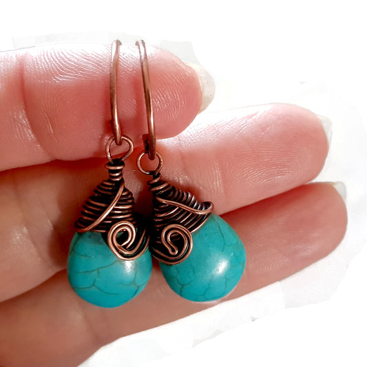 Turquoise Blue Howlite Earrings | KJ-396E | Artisan Earrings